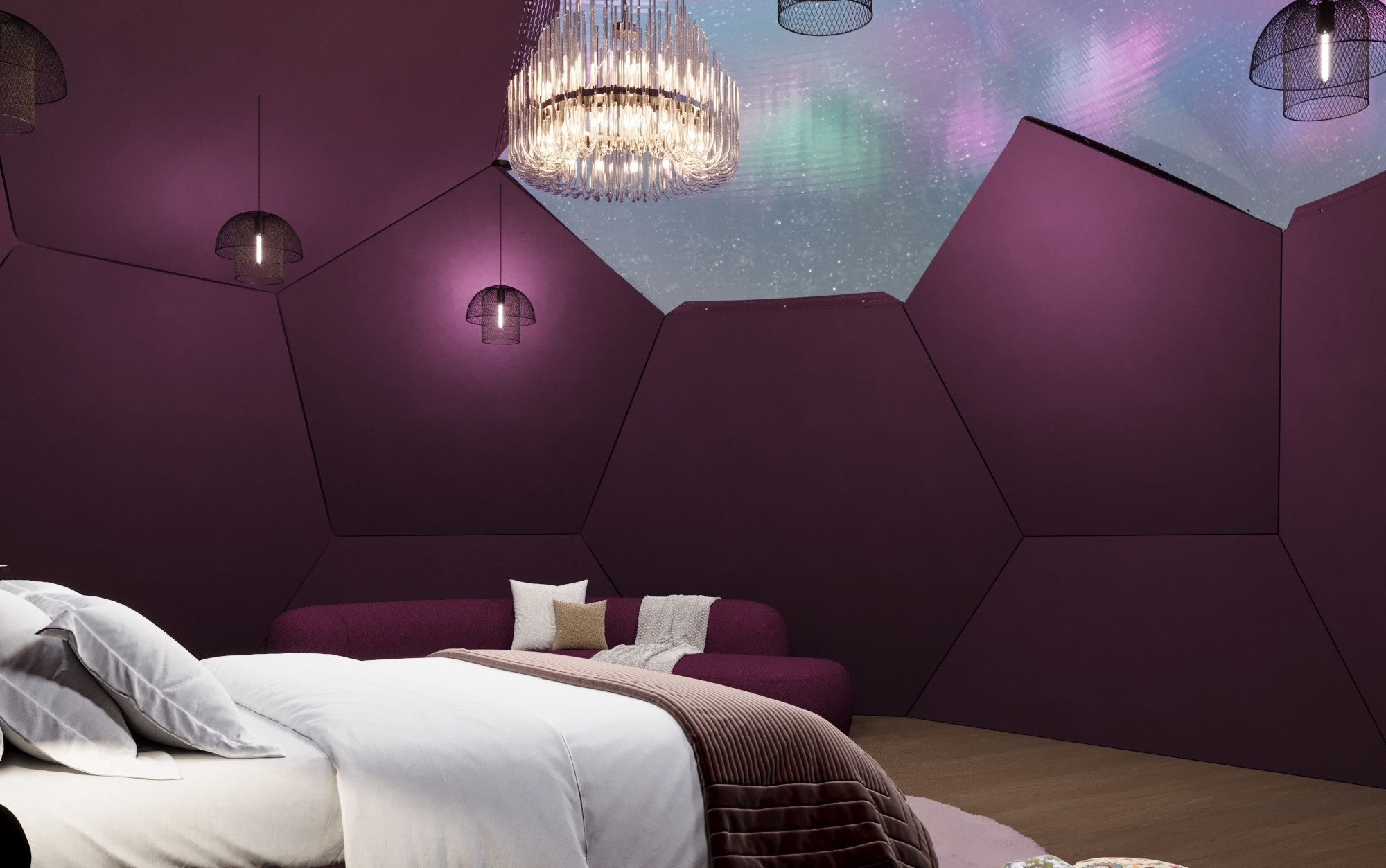 Night Sky offers a spacious haven for couples, featuring celestial decor, mesmerizing views, and ample room to relax and reconnect.